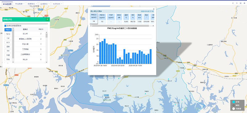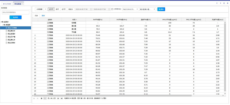 實現(xiàn)了對揚(yáng)塵監(jiān)測站的數(shù)據(jù)采集、對比、分析、展示等功能,對監(jiān)測站上傳的數(shù)據(jù)進(jìn)行實時監(jiān)控、運(yùn)維記錄、對歷史數(shù)據(jù)進(jìn)行查詢,并根據(jù)上傳的數(shù)據(jù)按分鐘、小時、日、月、季、年均值數(shù)據(jù)計算,為客戶提供數(shù)據(jù)上的支持和幫助。