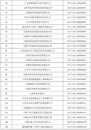 天津市2017年第一批入庫(kù)國(guó)家科技型中小企業(yè)名單公告
