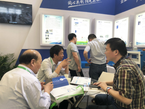 同陽科技市場部、產(chǎn)品部等員工為參展者做技術介紹