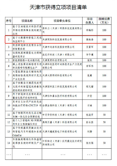更新時間: 點擊:16060 所屬欄目:公司新聞 Update Time: Hits:16060 Belong Column:News近日,科技部公示了“科技助力經(jīng)濟2020”重點專項擬立項項目,天津同陽科技發(fā)展有限公司牽頭承擔的【基于大數(shù)據(jù)的智能工況在線監(jiān)測平臺】項目成功入選。“科技助力經(jīng)濟2020”重點專項由科技部發(fā)起,定位于支持一批覆蓋國民經(jīng)濟主要行業(yè)的技術(shù)創(chuàng)新項目,特別是短期內(nèi)能見到實效、對復(fù)工復(fù)產(chǎn)有直接帶動作用的技術(shù)成果轉(zhuǎn)化落地項目,以幫助一批優(yōu)秀科技型企業(yè)克服疫情帶來的短期困難。