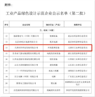 近日,國家工信部發(fā)布《工業(yè)產(chǎn)品綠色設(shè)計示范企業(yè)名單(第二批)公示》,天津同陽科技發(fā)展有限公司榮膺其中。