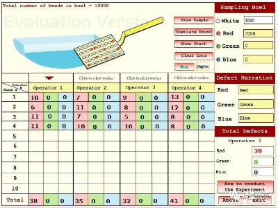為了讓參訓人員更深刻地了解系統(tǒng)偏差問題,馮老師特地在電腦上演示了著名質量學家戴明的漏斗實驗和紅珠實驗。通過實驗可以看出,對于系統(tǒng)誤差的干預,只會增加下次的誤差,而需要大家明白的是,該如何通過統(tǒng)計方法找出問題的根源。實驗非常有趣,也給大家?guī)砹烁钊氲乃伎肌?