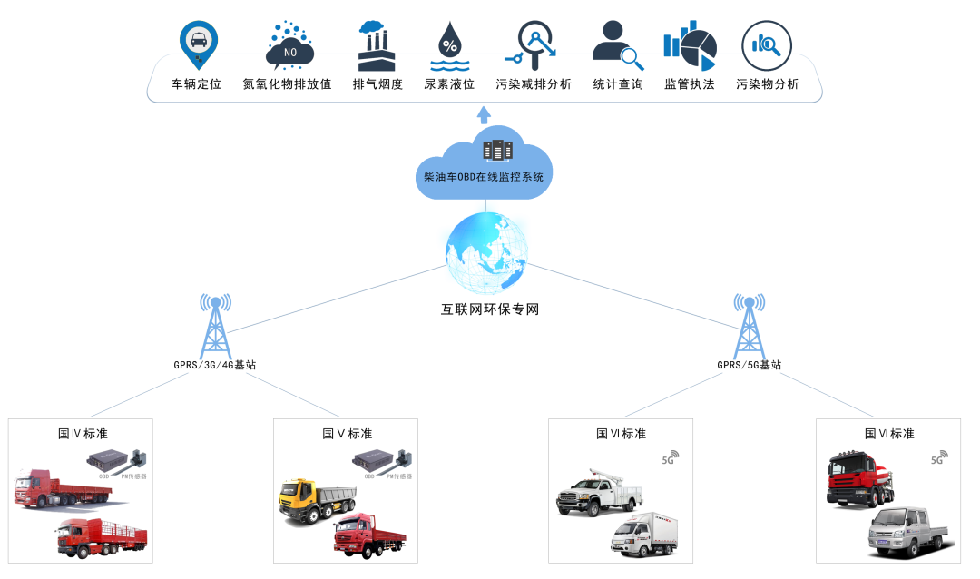 同陽科技推出的柴油貨車OBD在線監(jiān)測解決方案,通過在柴油貨車上安裝OBD并對其定位、里程、行程軌跡、氮氧化物排放、顆粒物排放、尿素消耗等數(shù)據(jù)實施在線監(jiān)控,來實現(xiàn)對柴油貨車的在線監(jiān)管、排放污染物分析、政策指導(dǎo)建議目的。