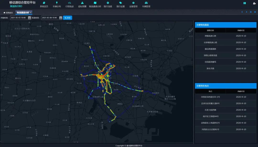 該系統(tǒng)可通過大數(shù)據(jù)分析功能識別城市的重點物流通道以及分析黑加油站點等功能,可為政府部門對限行規(guī)則和油品管控提供指導(dǎo)性意見。
