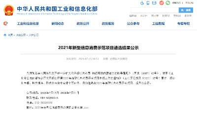 同陽科技入選工信部2021年新型信息消費(fèi)示范項(xiàng)目名單