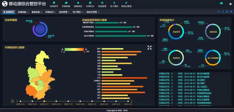 非道路移動機(jī)械平臺可以查看全省/市的機(jī)械臺帳,以及對機(jī)械的遠(yuǎn)程監(jiān)管。掌握全部非道路移動機(jī)械的排放階段、工況狀態(tài)、地理定位以及尾氣污染物排放情況并進(jìn)行數(shù)據(jù)分析與統(tǒng)計。還可以在線對工地電子圍欄、低排區(qū)等進(jìn)行規(guī)劃,降低非道路移動機(jī)械在特定時間特定地點的污染物排放。